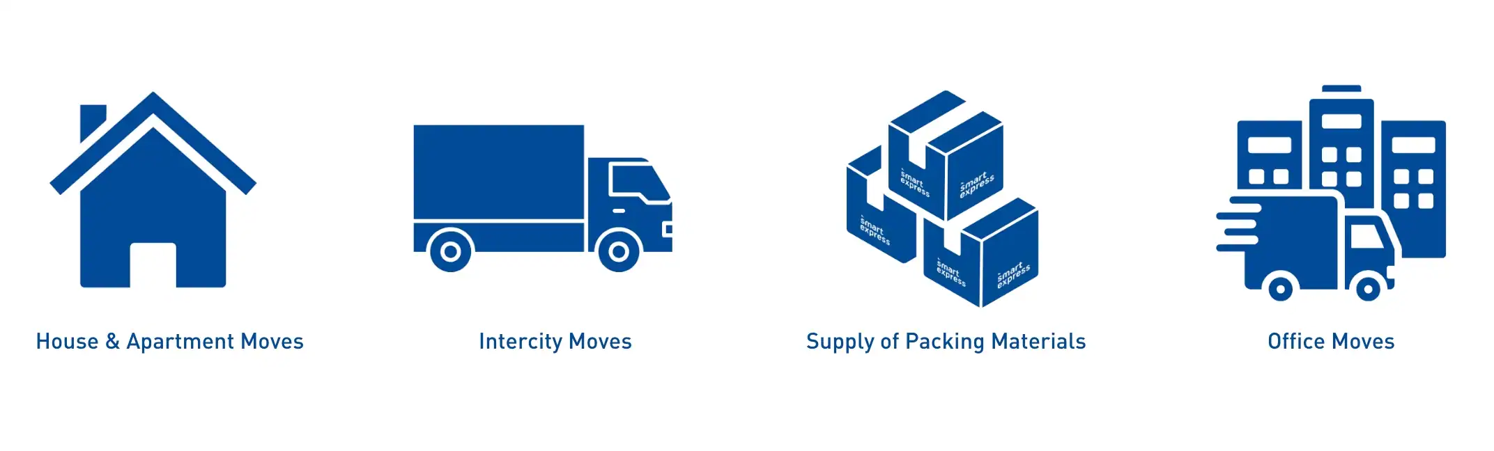 • This offer applies only to house and apartment moves, inter-city moves, office moves, and the supply of packing materials provided by Smart Express. It does not apply to any other costs or services that occur or are necessary for the move (e.g. storage, cleaning, decluttering or packing services).